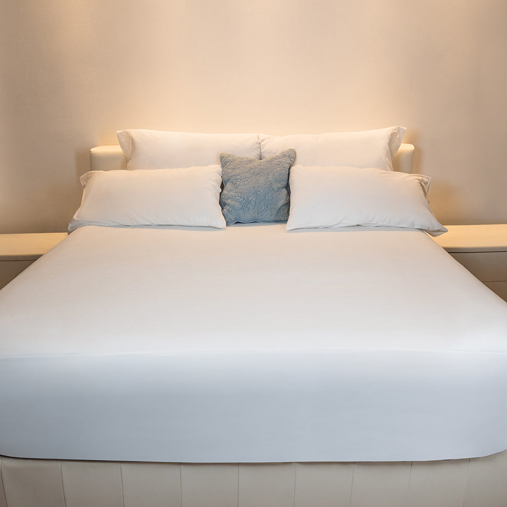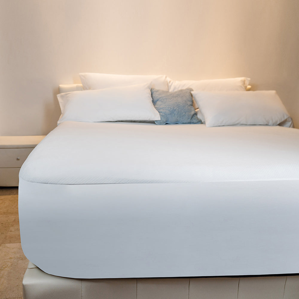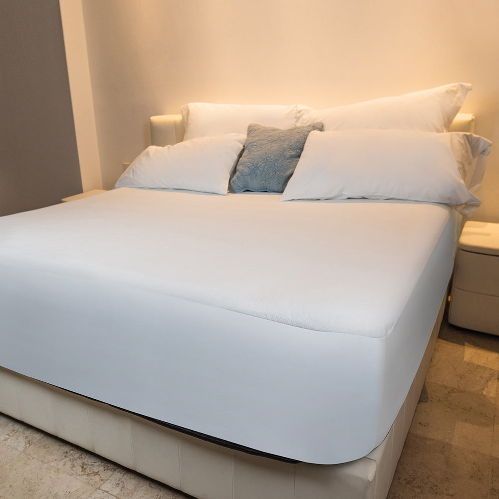 Protector de colchón impermeable ideal para habitaciones de hoteles y rentas vacacionales.